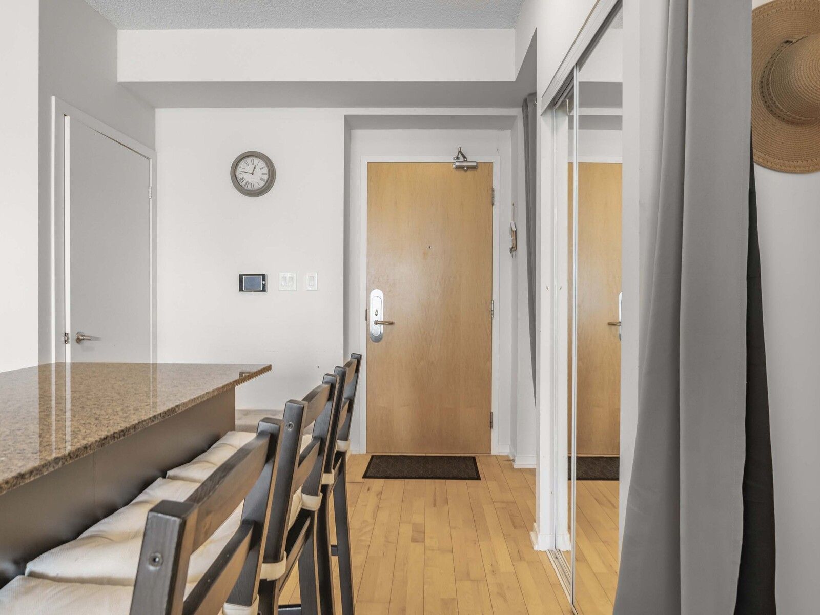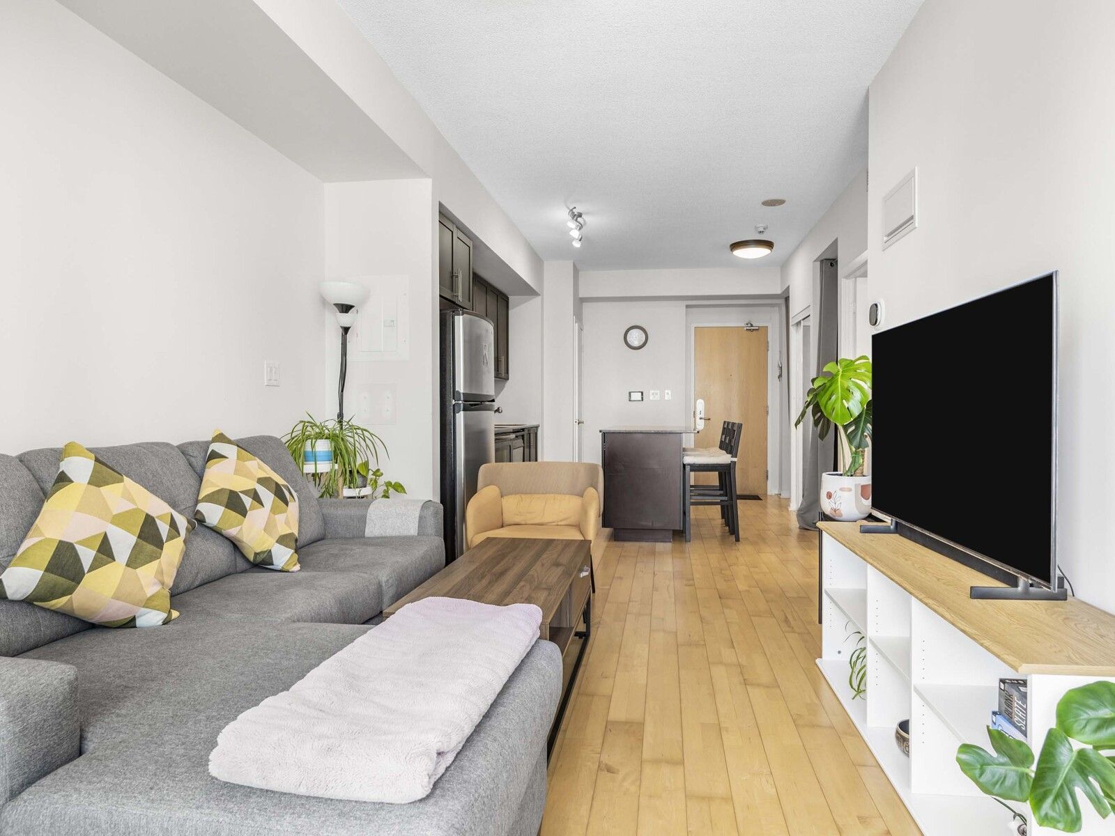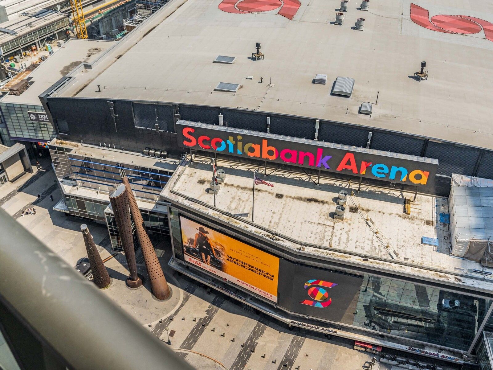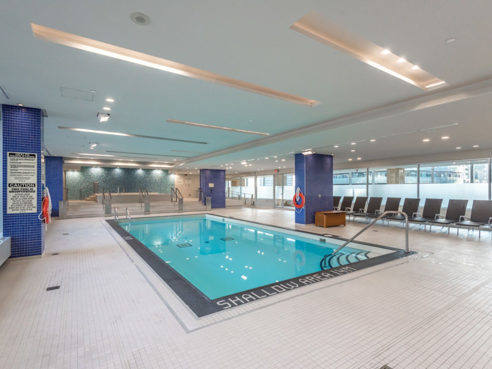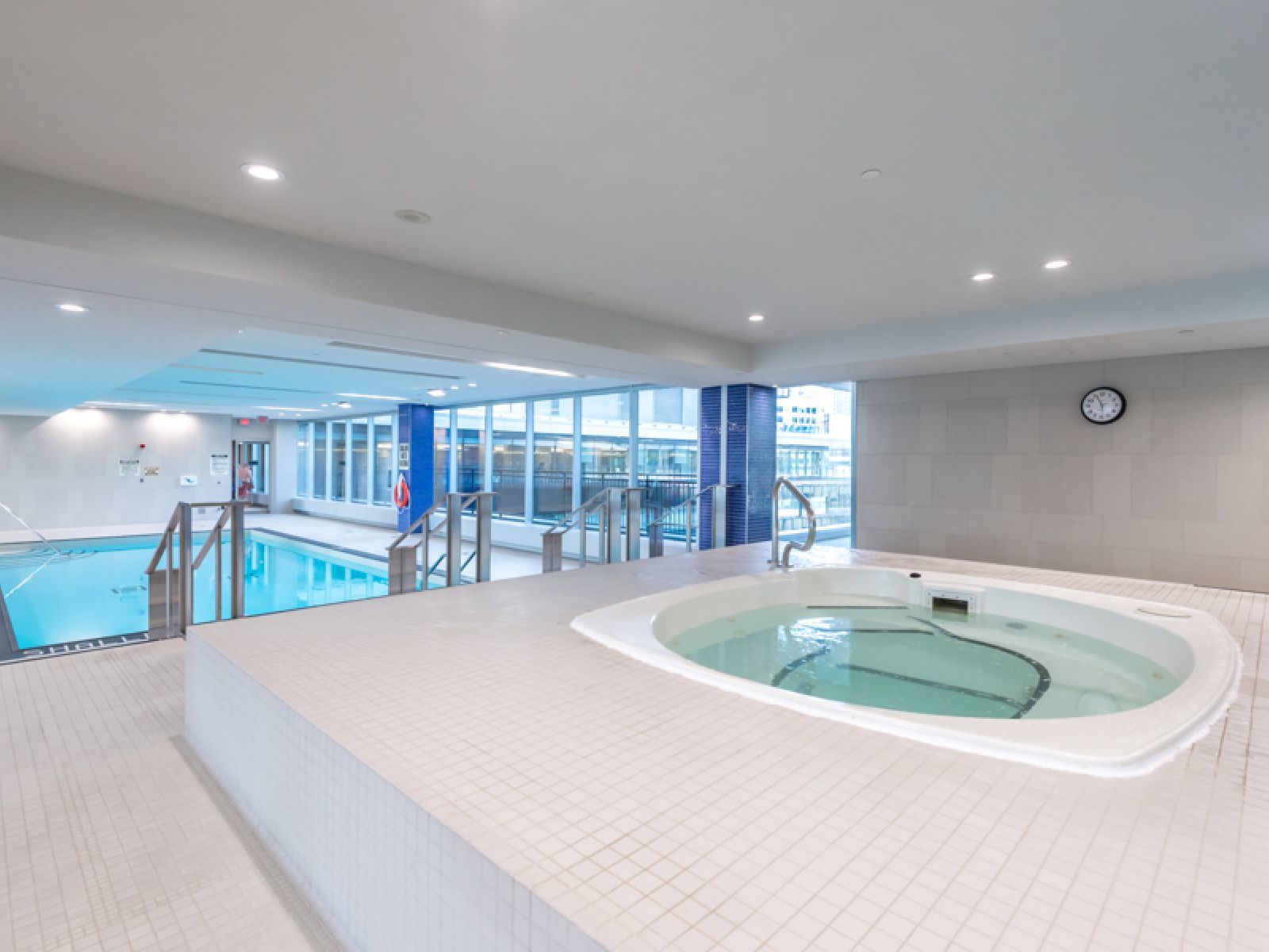 Sleek 1-bedroom plus den suite in the iconic Maple Leaf Square. This rare east-facing layout features 9-foot ceilings, floor-to-ceiling windows, and a spacious balcony with sweeping city and lake views. The open-concept interior is finished with granite countertops, a ceramic tile backsplash, and stainless steel appliances. A versatile, oversized den provides ample space for a second bedroom or private home office. Includes one prime underground parking spot. Building amenities offer a resort-style experience with 24-hour concierge, indoor and outdoor pools, a sun deck with BBQs, a state-of-the-art fitness centre, sauna, theatre room, and business centre. Enjoy unmatched urban connectivity with direct indoor access to the PATH, Union Station, Scotiabank Arena, Longo's, Starbucks, and LCBO. Steps to the Financial District, Harbourfront, Rogers Centre, and a vast selection of downtown dining and nightlife. Ideal for professionals seeking a high-energy, walk-everywhere lifestyle.